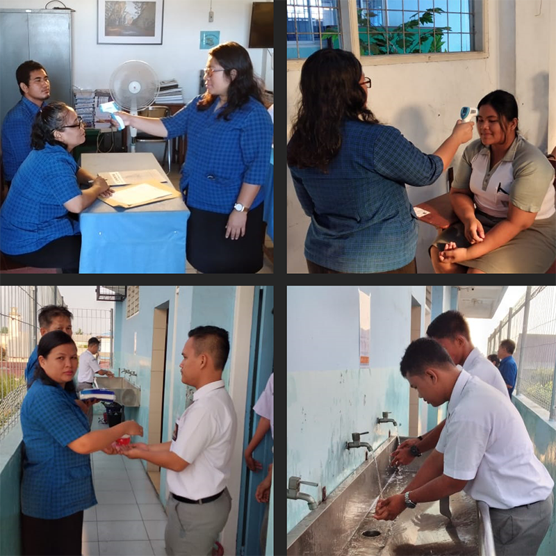 dengan hand soap, dan melakukan pengukuran suhu tubuh menggunakan thermo scanner. Bentuk lain untuk pencegahan