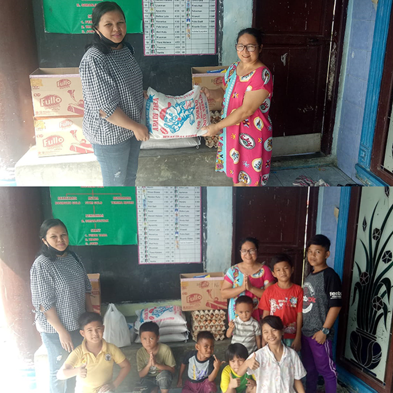 Karena alasan physical distancing dalam situasi pandemi covid 19, maka pemberian bantuan ini hanya diwakilkan oleh Wali Kelas XII - IIS saja (Ibu Reni Sinaga). Paket bantuan di antaranya beras, mi instan, telur, minyak goreng, gula, dan teh.
