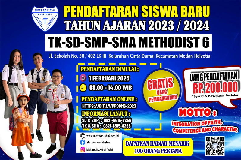 Siapkan pendidikan terbaik anak anda dengan bergabung ke Sekolah Methodist 6, terakreditasi A & dukungan fasilitas lengkap.