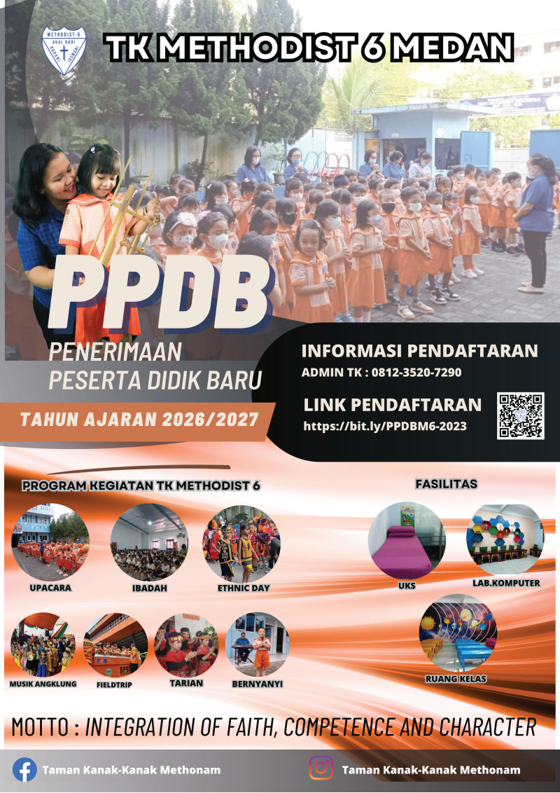 Link Pendaftaran Silahkan Klik : PENDAFTARAN ONLINE TK METHODIST 6