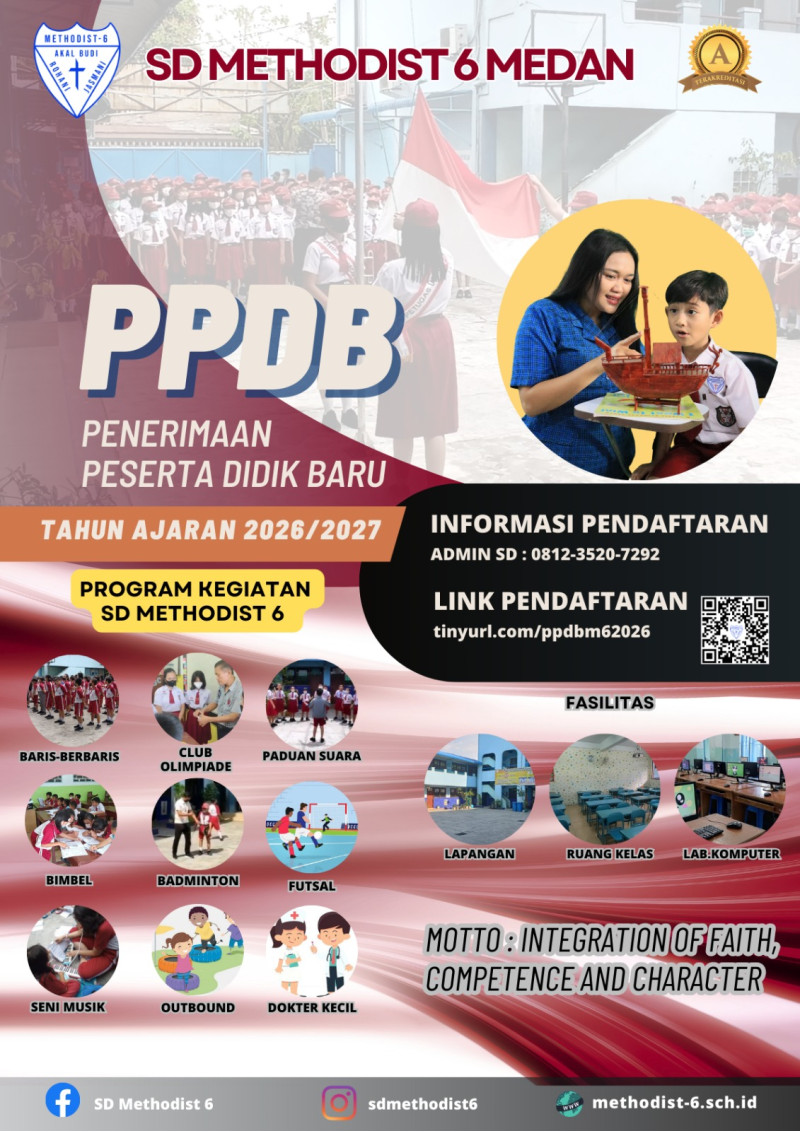 Pendaftaran Online untuk peserta Didik Baru kelas 1 SD sudah dibuka. Mari Bapak/Ibu untuk mendaftarkan anak kita bersekolah di SD Methodist 6 Medan.